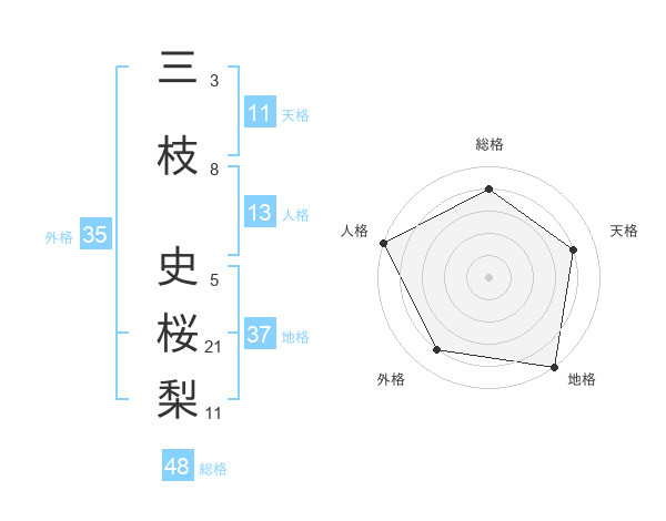 三枝 史桜梨さんを姓名の画数から五運を鑑定