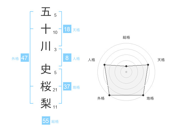 五十川 史桜梨さんを姓名の画数から五運を鑑定