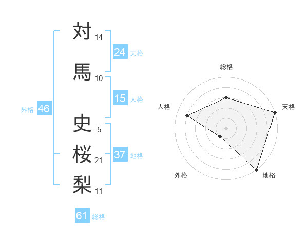 対馬 史桜梨さんを姓名の画数から五運を鑑定