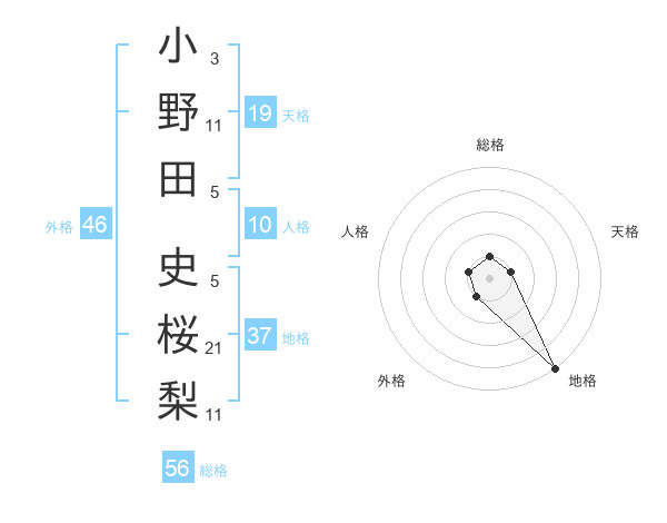 小野田 史桜梨さんを姓名の画数から五運を鑑定