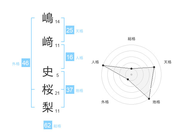 嶋﨑 史桜梨さんの地格は37画の5点!