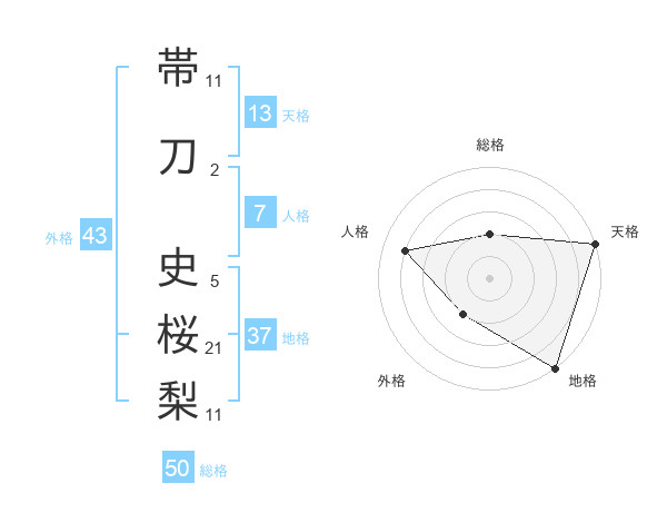 帯刀 史桜梨さんを姓名の画数から五運を鑑定