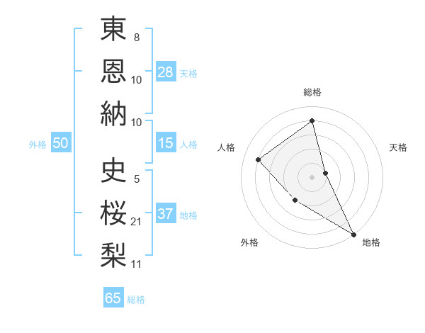 東恩納 史桜梨さんを姓名の画数から五運を鑑定