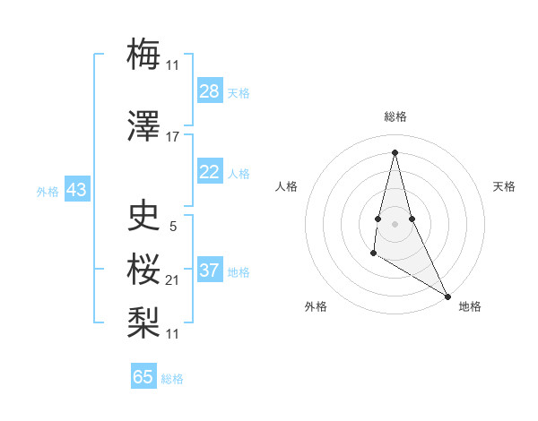 梅澤 史桜梨さんを姓名の画数から五運を鑑定