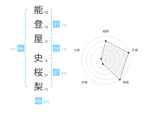 能登屋 史桜梨さんを姓名の画数から五運を鑑定