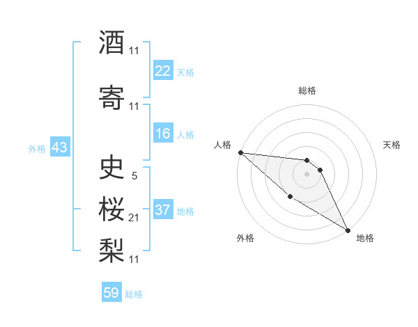 酒寄 史桜梨さんを姓名の画数から五運を鑑定