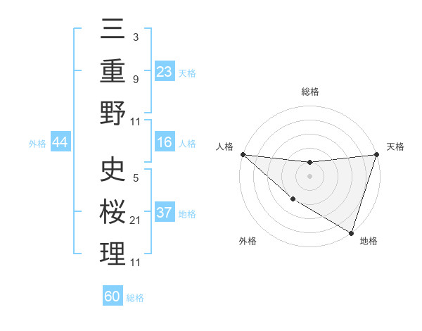三重野 史桜理さんを姓名の画数から五運を鑑定