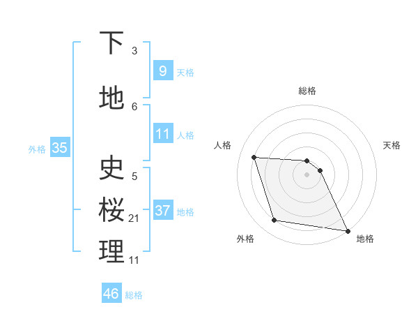 下地 史桜理さんを姓名の画数から五運を鑑定