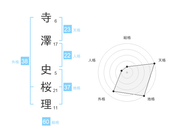 寺澤 史桜理さんの天格は23画の5点!
