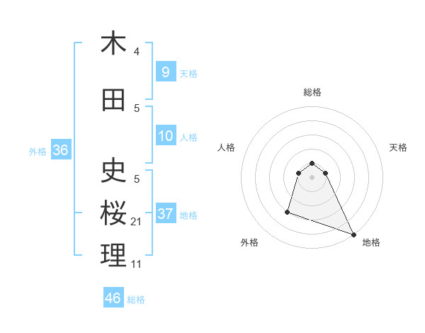木田 史桜理さんを姓名の画数から五運を鑑定