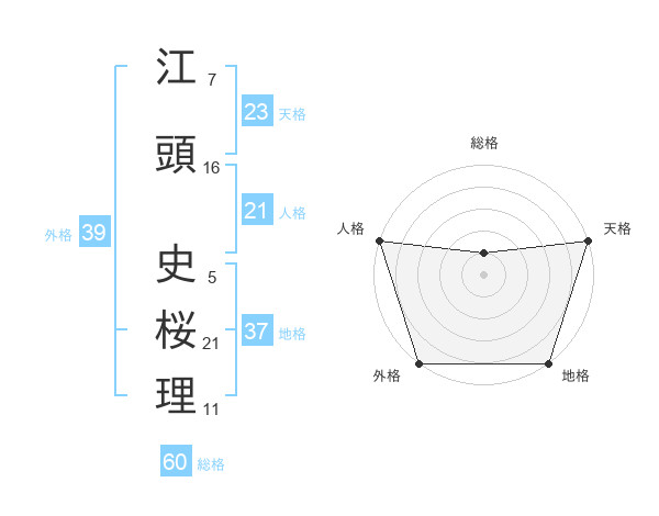 江頭 史桜理さんを姓名の画数から五運を鑑定