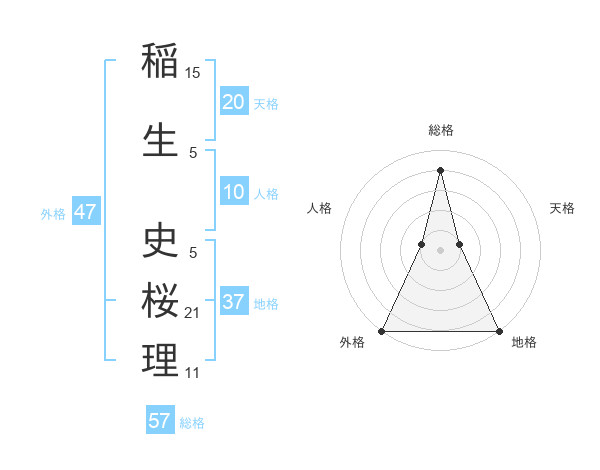 稲生 史桜理さんを姓名の画数から五運を鑑定