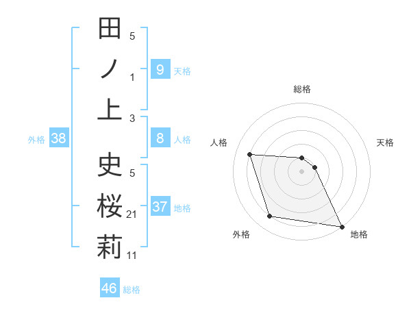 田ノ上 史桜莉さんの外格は38画の4点!