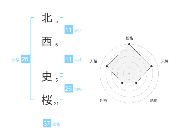 北西 史桜さんの総格は37画の5点!