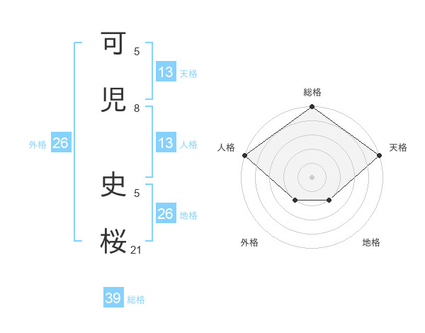 可児 史桜さんの外格は26画の2点!