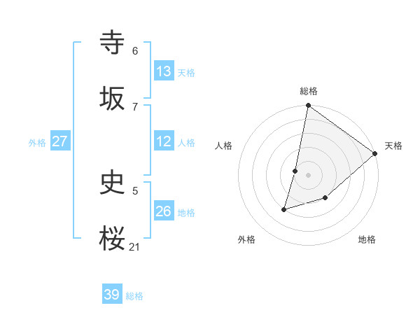 寺坂 史桜さんの総格は39画の5点!