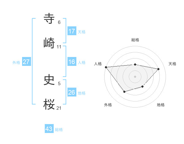 寺崎 史桜さんの天格は17画の4点!