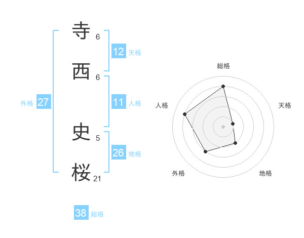 寺西 史桜さんを姓名の画数から五運を鑑定