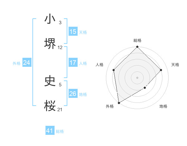 小堺 史桜さんを姓名の画数から五運を鑑定