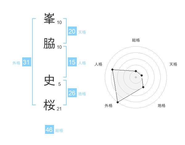 峯脇 史桜さんを姓名の画数から五運を鑑定
