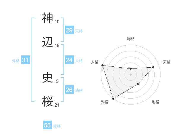 神辺 史桜さんの総格は55画の1点!