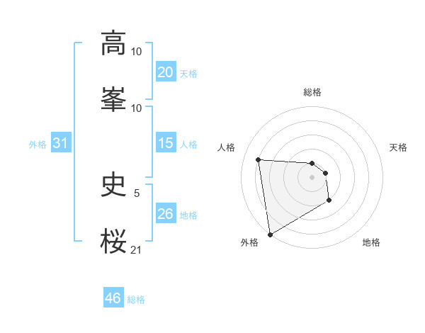 高峯 史桜さんを姓名の画数から五運を鑑定