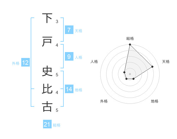 下戸 史比古さんの総格は21画の5点!