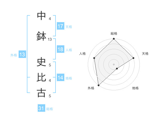 中鉢 史比古さんを姓名の画数から五運を鑑定