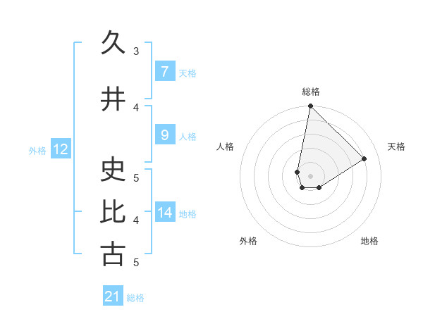 久井 史比古さんの総格は21画の5点!