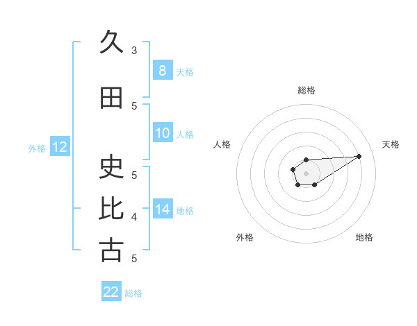 久田 史比古さんの総格は22画の1点!