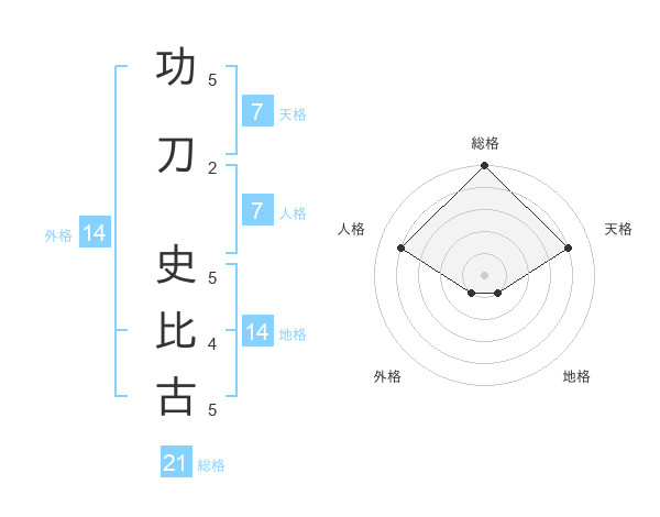 功刀 史比古さんを姓名の画数から五運を鑑定