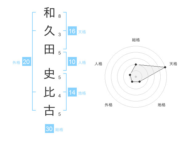 和久田 史比古さんの天格は16画の5点!