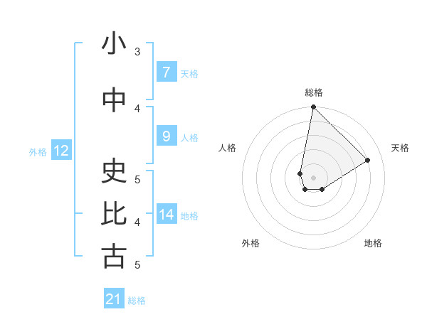 小中 史比古さんの総格は21画の5点!