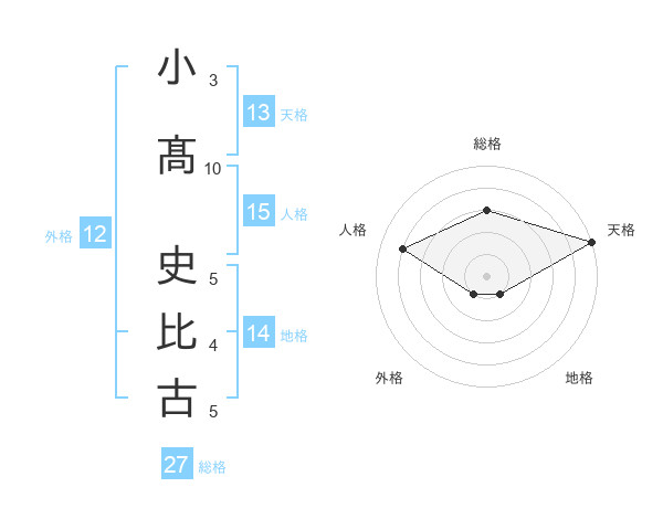 小髙 史比古さんを姓名の画数から五運を鑑定