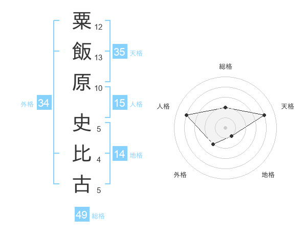 粟飯原 史比古さんを姓名の画数から五運を鑑定