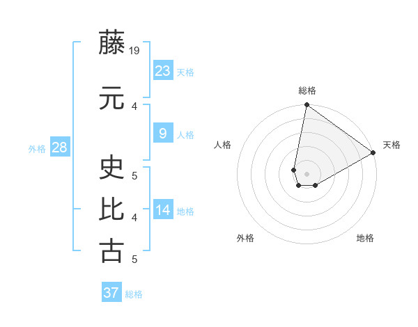 藤元 史比古さんの総格は37画の5点!