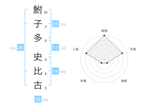 鮒子多 史比古さんの総格は39画の5点!