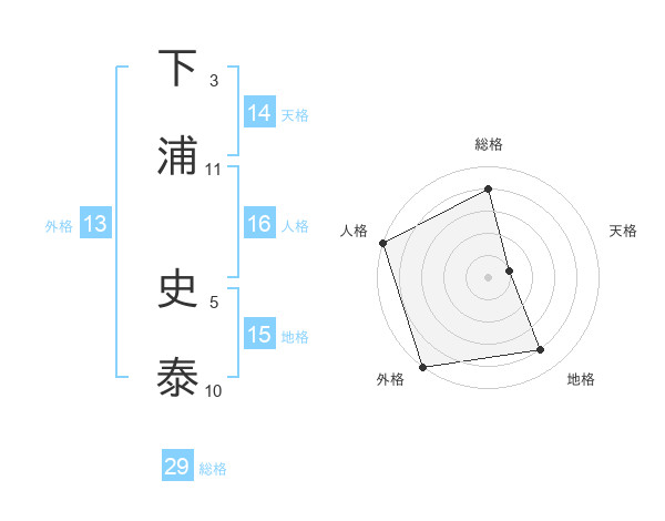 下浦 史泰さんを姓名の画数から五運を鑑定