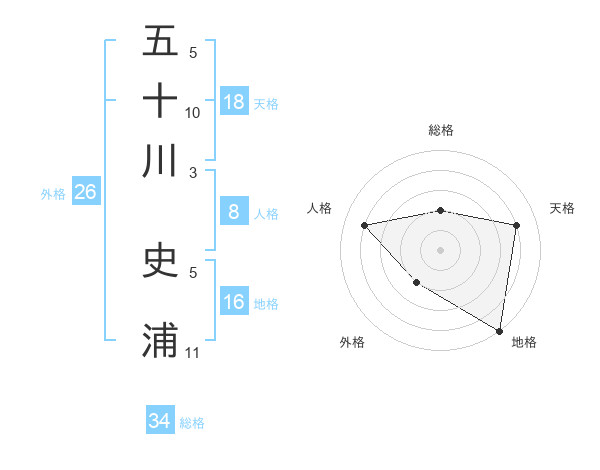 五十川 史浦さんを姓名の画数から五運を鑑定