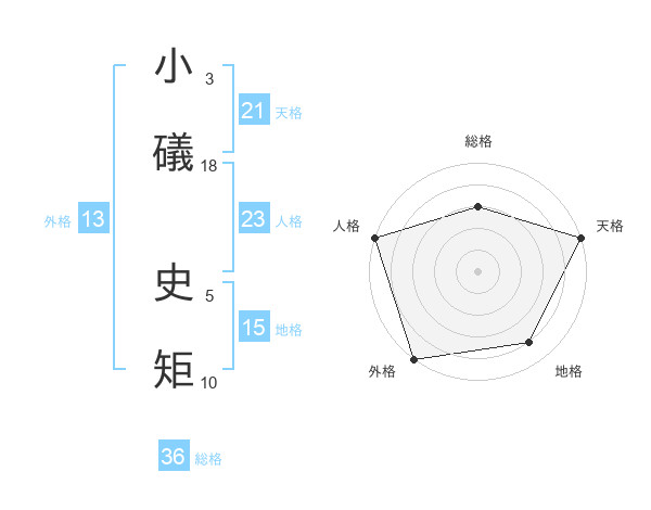 小礒 史矩さんを姓名の画数から五運を鑑定