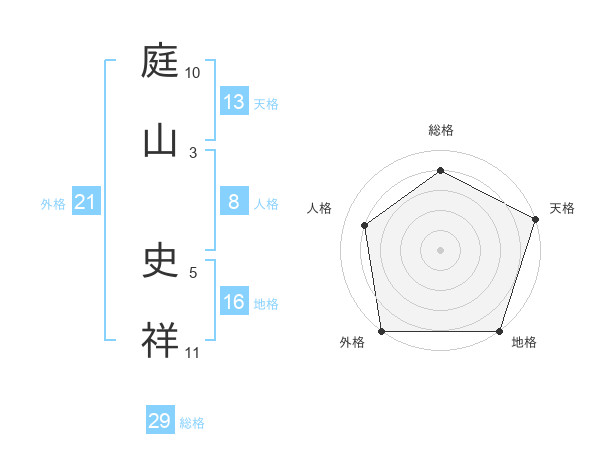 庭山 史祥さんの総格は29画の4点!