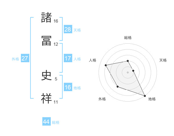 諸冨 史祥さんを姓名の画数から五運を鑑定