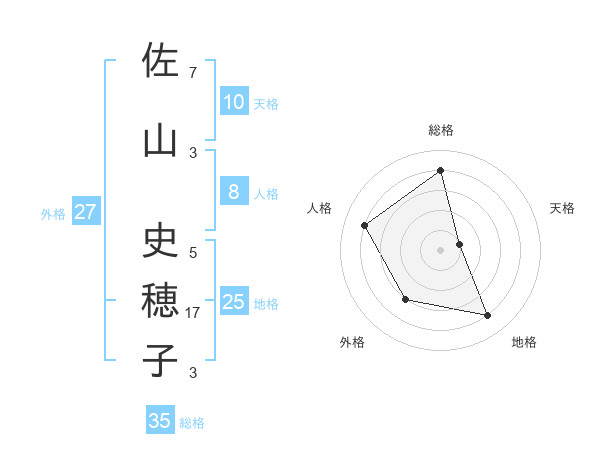 佐山 史穂子さんを姓名の画数から五運を鑑定