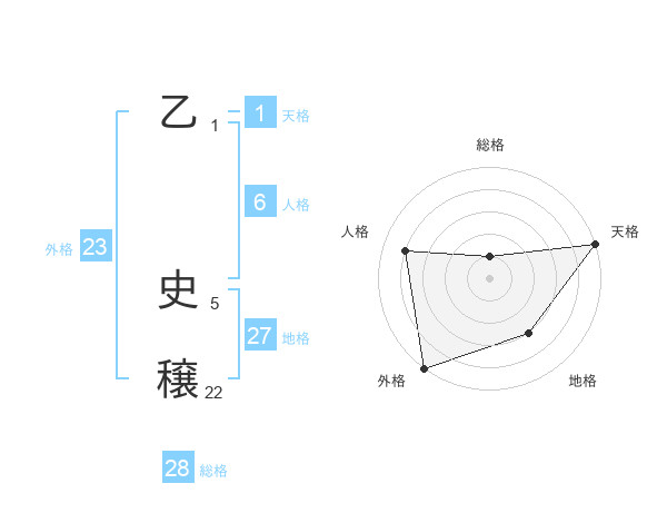 乙 史穣さんの外格は23画の5点!