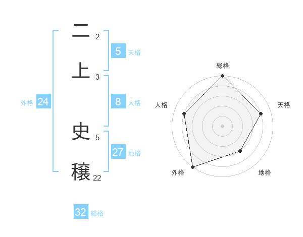 二上 史穣さんの外格は24画の5点!