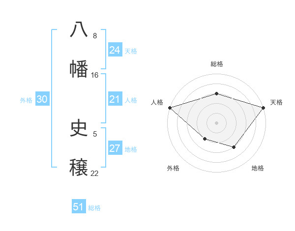 八幡 史穣さんの総格は51画の3点!