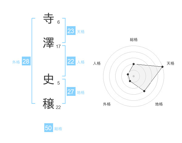 寺澤 史穣さんの総格は50画の2点!