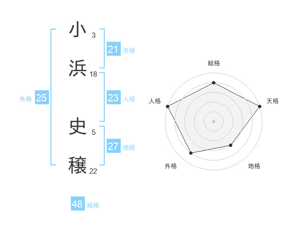 小浜 史穣さんの天格は21画の5点!