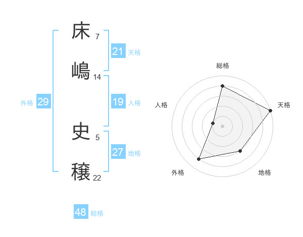 床嶋 史穣さんを姓名の画数から五運を鑑定