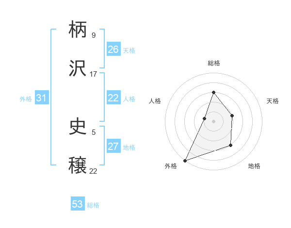 柄沢 史穣さんの総格は53画の3点!